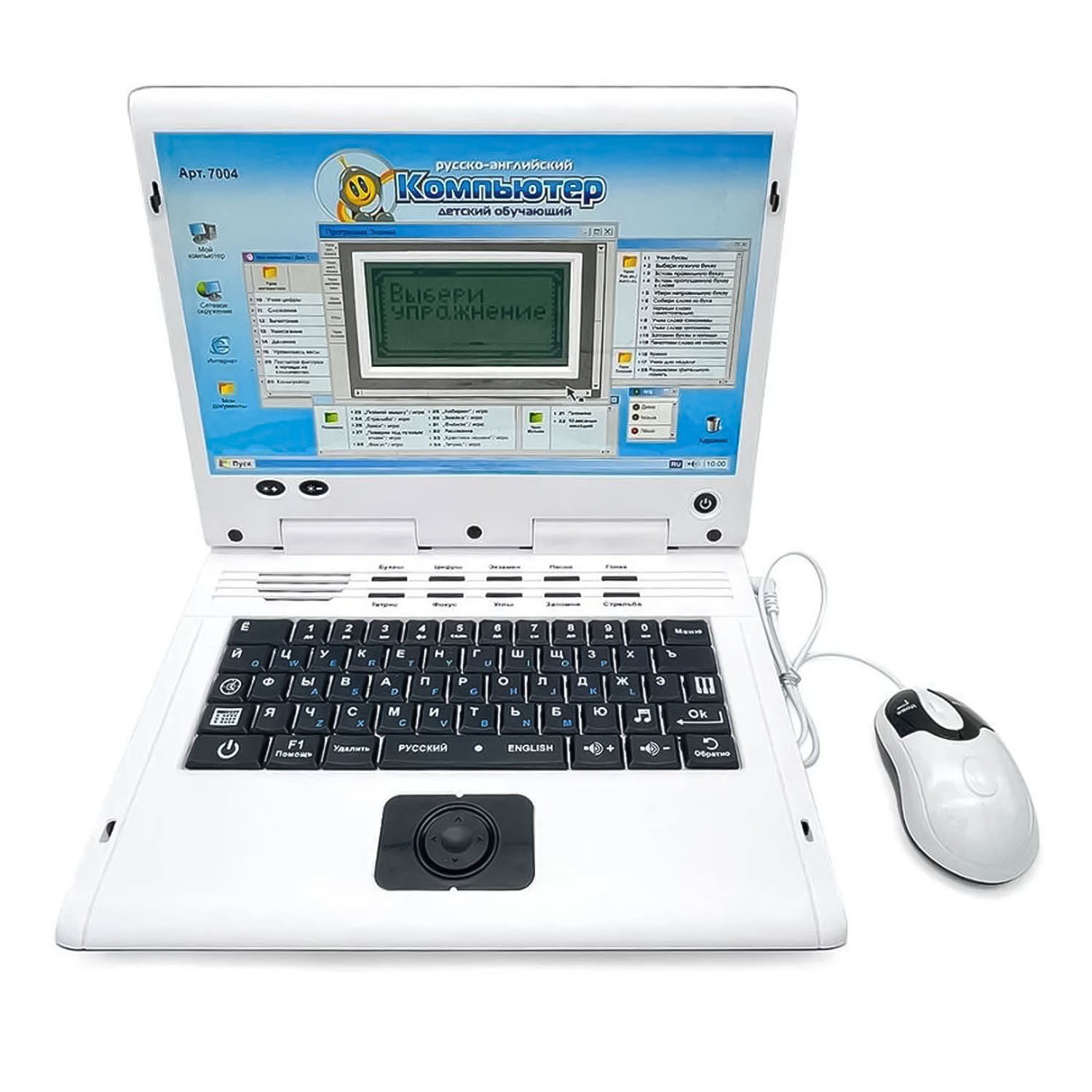 Детский обучающий компьютер прекрасный помощник в развитии вашего ребенка и отличная замена современным гаджетам. С такой игрушкой можно почувствовать себя взрослым, а также весело и с пользой провести время. Компьютер выглядит очень стильно и представлен со всеми аксессуарами , напоминающий мини-ноутбук. Разработан данный ноутбук специально для дошкольной подготовки к школе, работает от батареек (батареек в комплекте НЕТ!), изучение как русского языка так и английского.