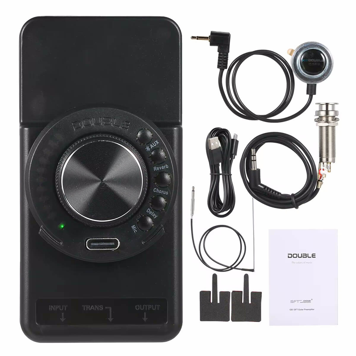 С DOUBLE OS1 вы получаете полный контроль над звуком вашей гитары благодаря регулировке тона, громкости, микрофона и реверберации. Встроенный микрофон позволяет добавлять свой вокал или другие звуки к вашему исполнению. Циферблатная индикация управления обеспечивает удобство в настройке эффектов, а индикатор низкого заряда батареи предупреждает вас о необходимости зарядки.